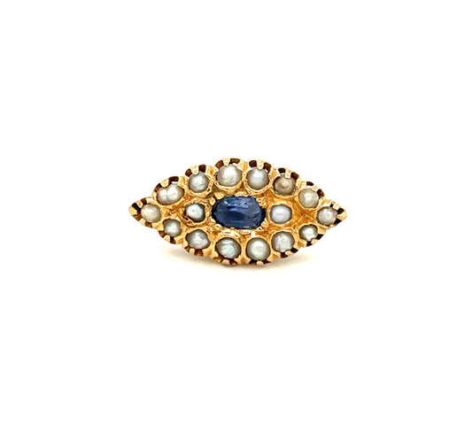 Victorian Era 18k Sapphire and Natural Pearl Tie Tack