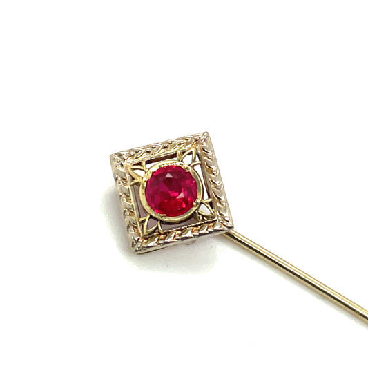 Antique Hand Fabricated 14k Gold Stick Pin With .25 CT Synthetic Ruby 1.6 grams
