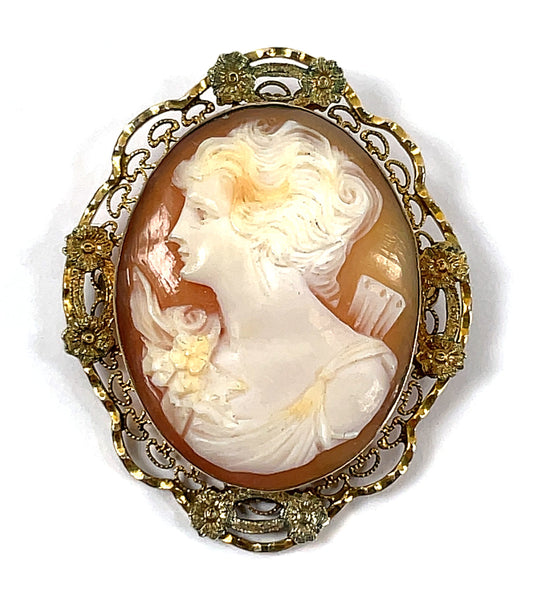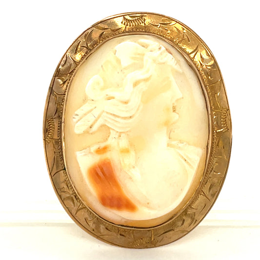 Antique Cameo Pin 10k Yellow Gold Shell 1.5" x 1 1/8" 5.5g