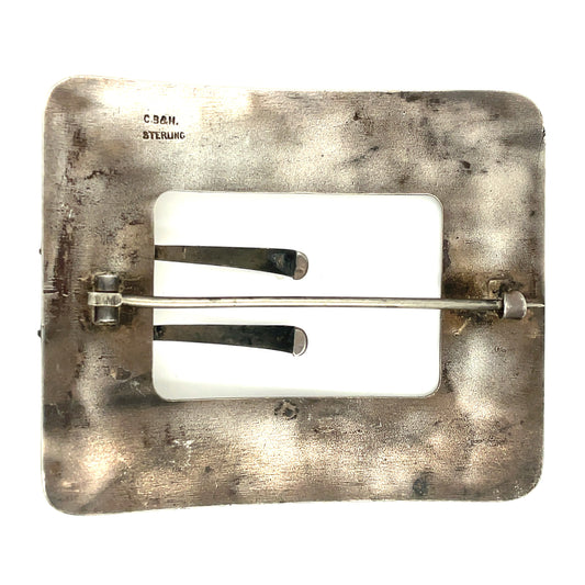 Victorian Sterling Silver Sash/Belt Buckle Hand Engraved Signed 34.8g