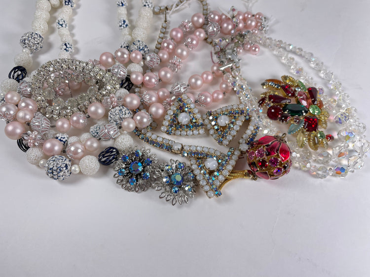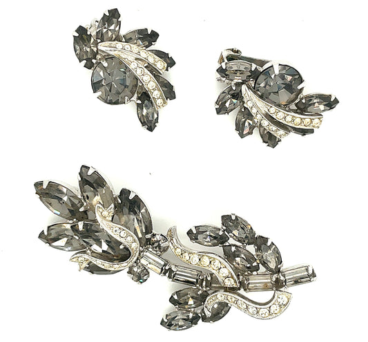 Vintage Weiss Signed Brooch and Earrings Rhinestones and Crystal