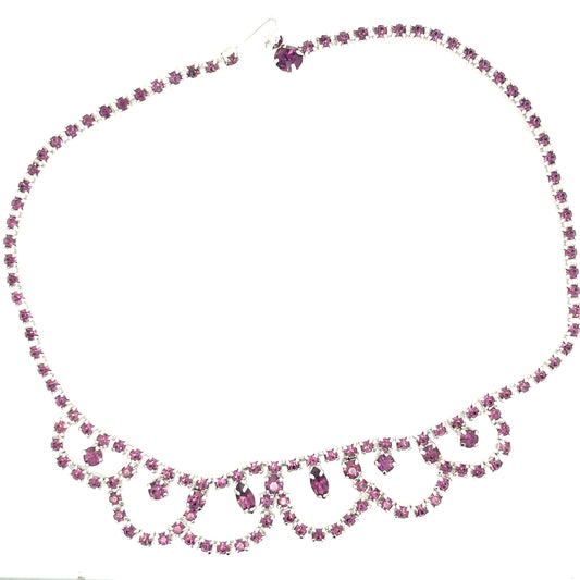 Vintage Joseph Wiesner Necklace and Screw Back Earring Set Purple Rhinestones