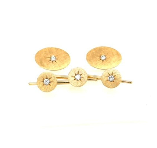 Vintage 14k Yellow Gold and Diamond Cuff Links and Shirt Studs Set 21.4 g
