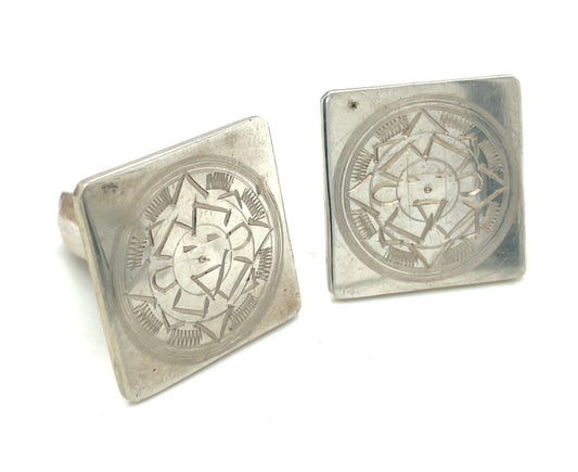 Vintage Sterling Silver Cuff Links Aztec Sun God Mexico 17.5 Grams