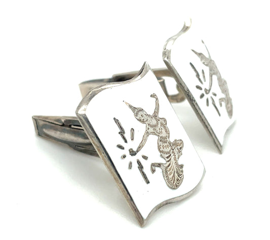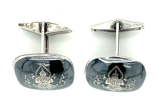 Vintage Sterling Silver Nielloware Siam Cuff Links