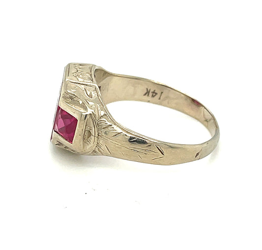 Vintage 14k Yellow Gold Masonic Ring Synthetic Rubies 6.08g Size 9.75