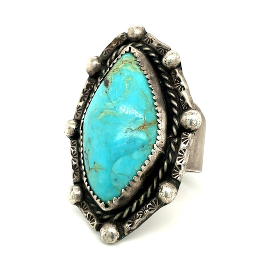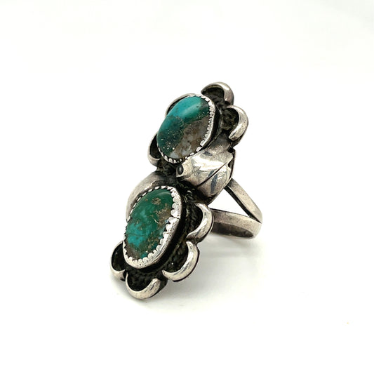 Vintage Southwestern Sterling Silver and Turquoise Ring Size 13