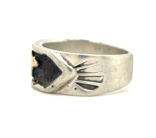 Vintage Southwestern Sterling Silver and 14k Gold Fetish Bear Ring Size 6 1/4”