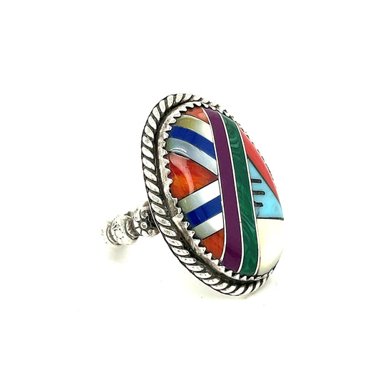 Southwestern Sterling Silver Inlay Ring 8.4 Grams Size 8