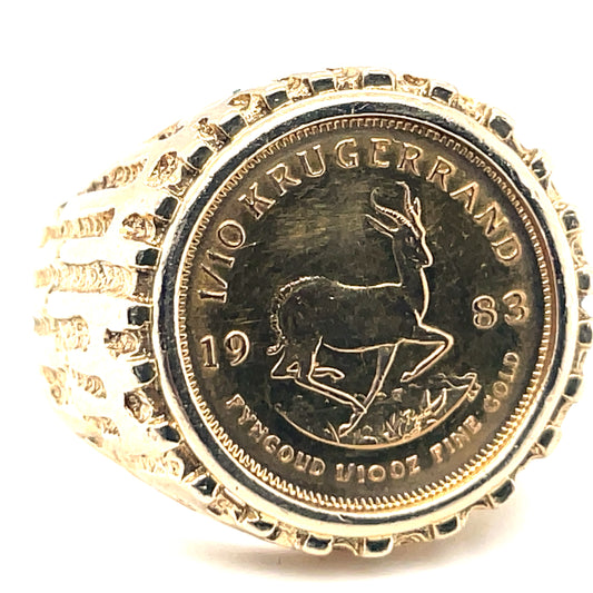 Vintage 1/10 Krugerrand 14k Gold Ring 1983 Size 9